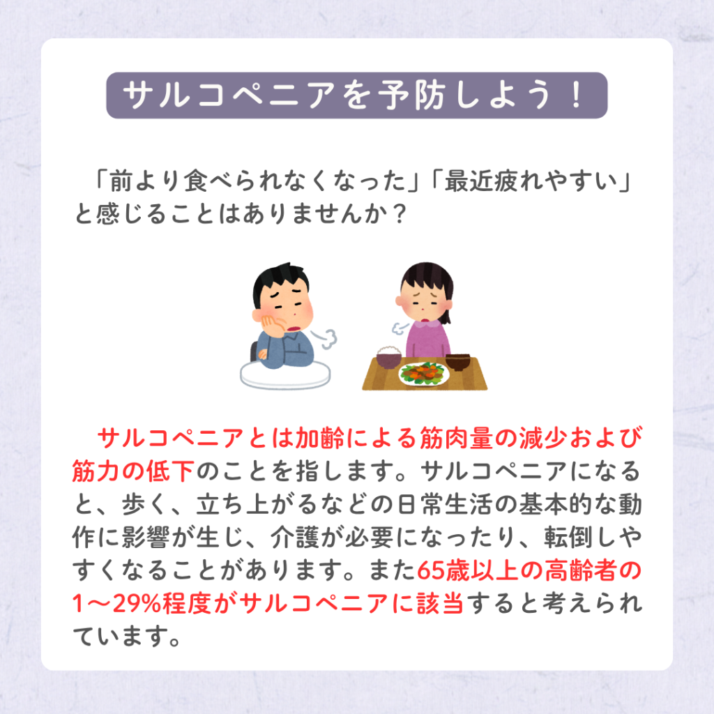 さて10月の栄養科だよりは、サルコペニアについて、当院の管理栄養士が詳しく説明しております。ぜひ皆様の健康にお役立てください。