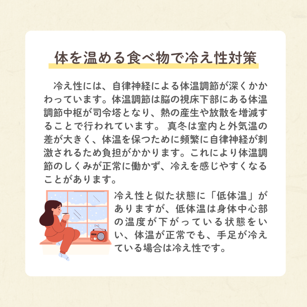 皆さま、こんにちは!本格的に冬がやってきましたね⛄12月の栄養科だよりは、体を温める食べ物について、当院の管理栄養士が詳しく説明しております。ぜひ皆様の健康にお役立てください。