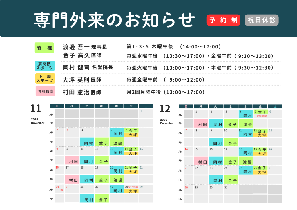 当院の整形外科には【一般外来 】 と【専門外来 】 がございます。